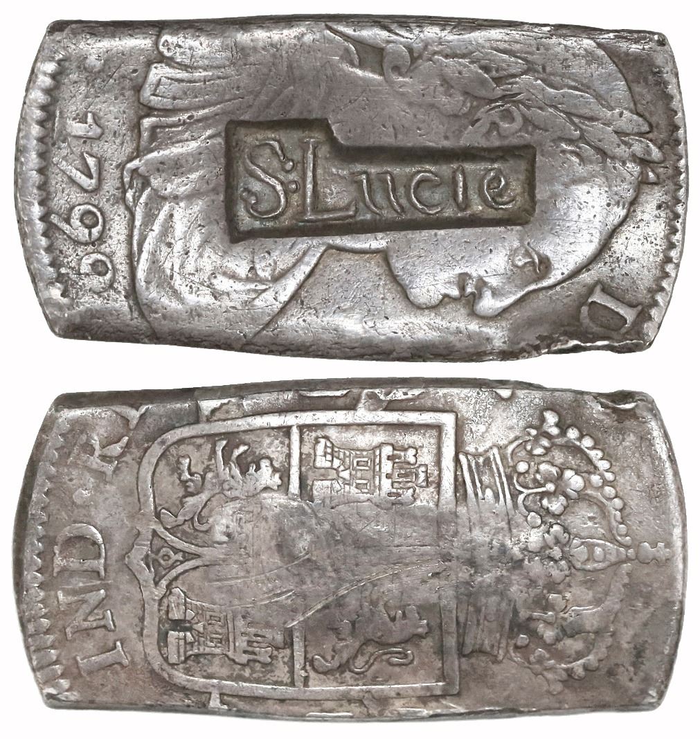 Saint Lucia (French or British), 6 livres 15 sous, "S.Lucie" incuse countermark (1813) on obverse of parallel-cut Spanish colonial bust 8 reales dated 1799, NGC VF details / scratches (tag only). KM-10.2; Pridmore-9. 15.34 grams. Beginning on Jan. 20, 1813, cut 8 reales were authorized for circulation as money on the island. The act specified that the cut pieces must be cut vertically along the pillars, leaving the shield in center intact. Such cut coinage circulated until Aug. 1, 1851, when the majority of issued pieces was redeemed. Countermark is a deeply impressed XF with host coin VF, edge bump at lower right, some old scratches on reverse now toned over. NGC #2801284-007 (tag only).