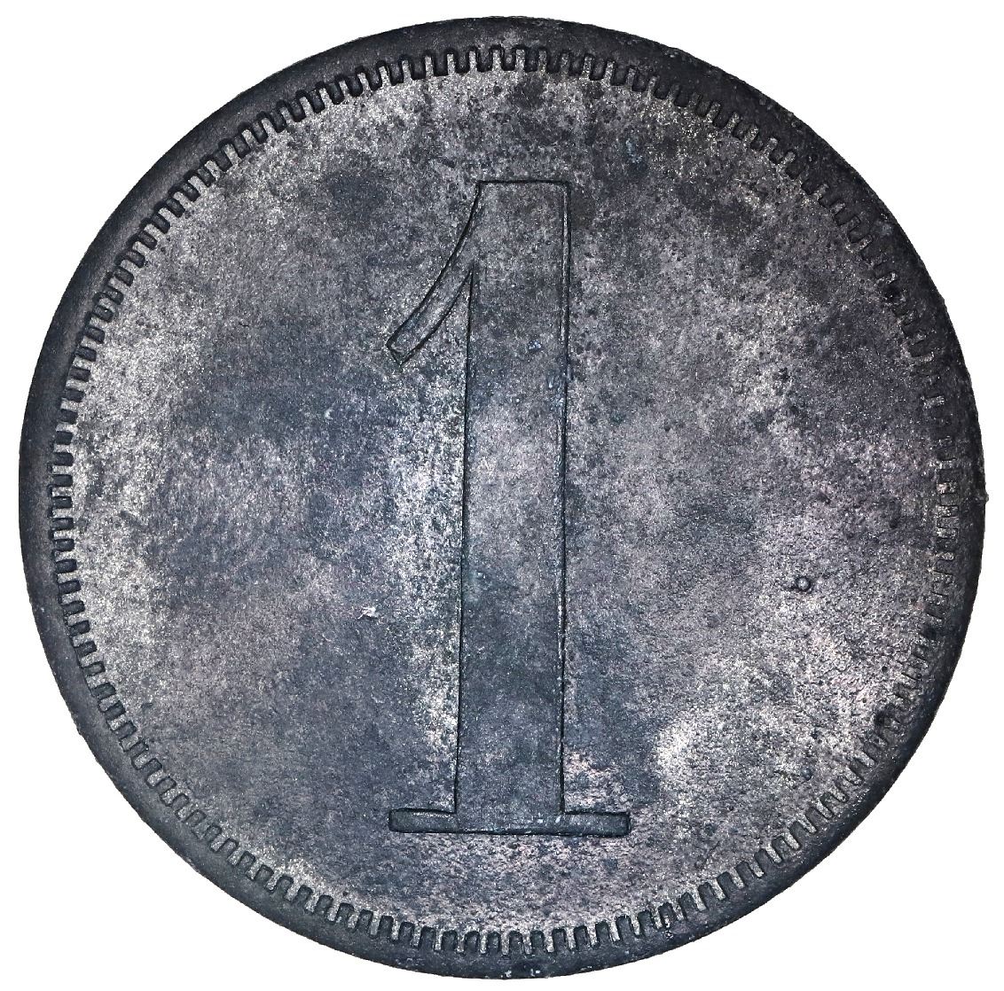 San German Municipio, Puerto Rico, zinc 1 almud token, Hacienda Filial Amor (ca. 1880), very rare, ex-Roehrs. Fumero-35; Archilla-Diez-443a. 6.15 grams. Obverse with HACIENDA / [six-point star] / FILIAL / [six-point star] / AMOR; reverse with large 1. Very dark-gray surfaces with veneer of oxidation (UNC details), listed as RRR in Archilla-Diez and missing in Rulau, tested (XRF) at 98% zinc. Pedigreed to the Edward Roehrs collection.
