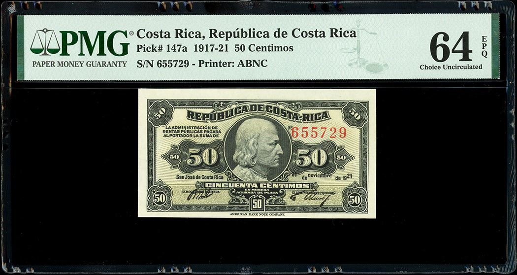 San Jose, Costa Rica, Republica de Costa Rica, 50 centimos, 21-11-1921, serial 655729, PMG Choice UN