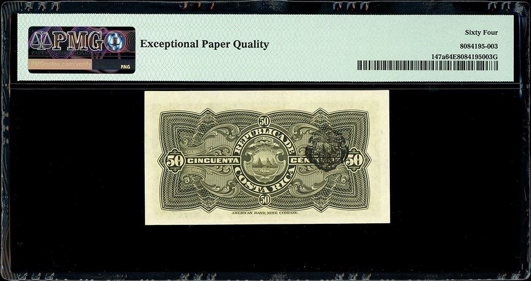 San Jose, Costa Rica, Republica de Costa Rica, 50 centimos, 21-11-1921, serial 655729, PMG Choice UNC 64 EPQ. SCWPM-147a. As printed with nice embossing and great paper quality, final date for the type. PMG #8084195-003.