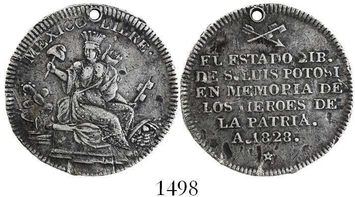 San Luis Potosi, Mexico, silver medal, 1828, heroes of the homeland.