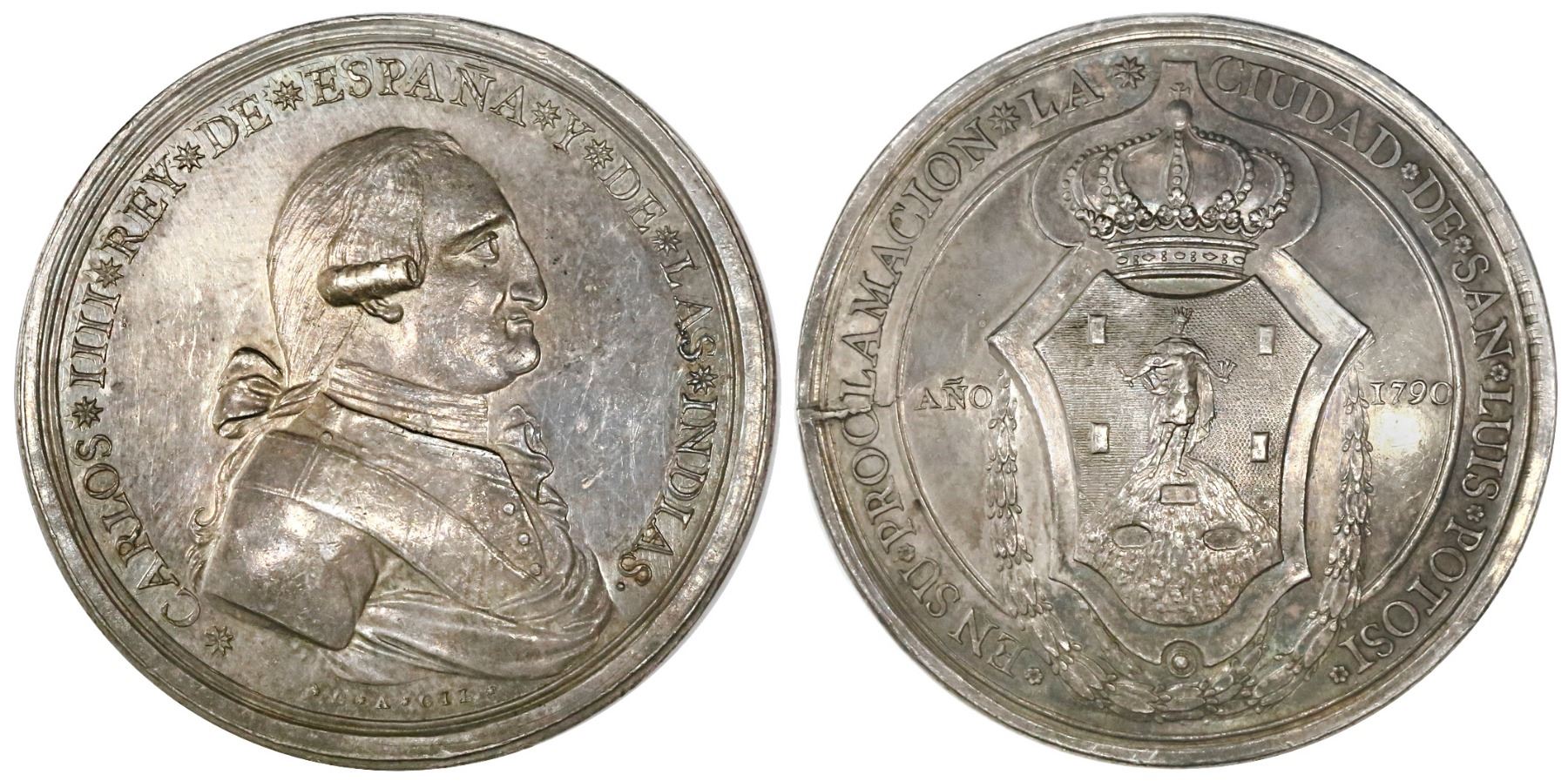 San Luis Potosi, Mexico, silver proclamation medal, Charles IV, 1790, NGC MS 62.
