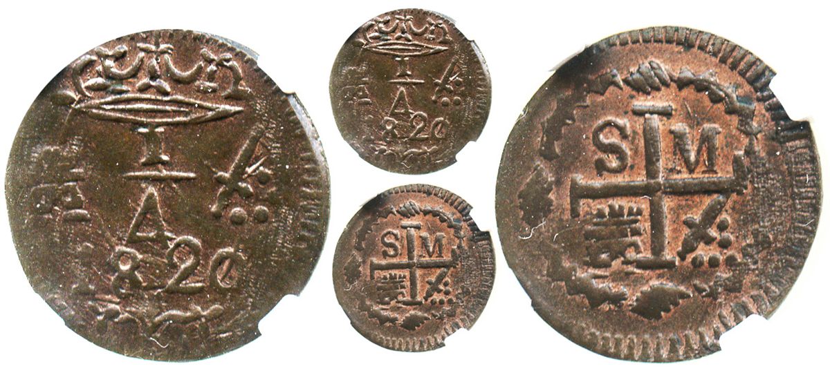 Santa Marta, Colombia, copper 1/4 real, Ferdinand VII, 1820, encapsulated NGC MS 63 BN, finest known