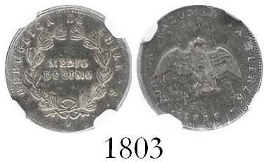 Santiago, Chile, 1/2 decimo, 1856, encapsulated NGC AU-55.