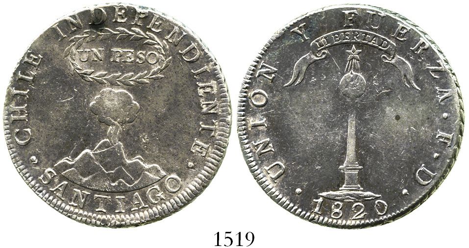 Santiago, Chile, 1 peso, 1820.