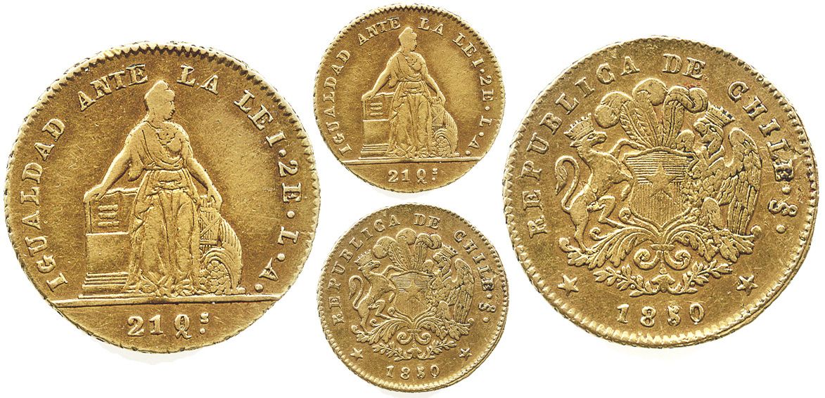 Santiago, Chile, 2 escudos, 1850LA. KM-102.2. 6.7 grams. Problem-free VF.