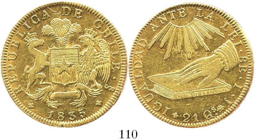 Santiago, Chile, 8 escudos, 1835IJ. KM-93. 26.4 grams. Lustrous XF with very faint 472 scratched into field below book.