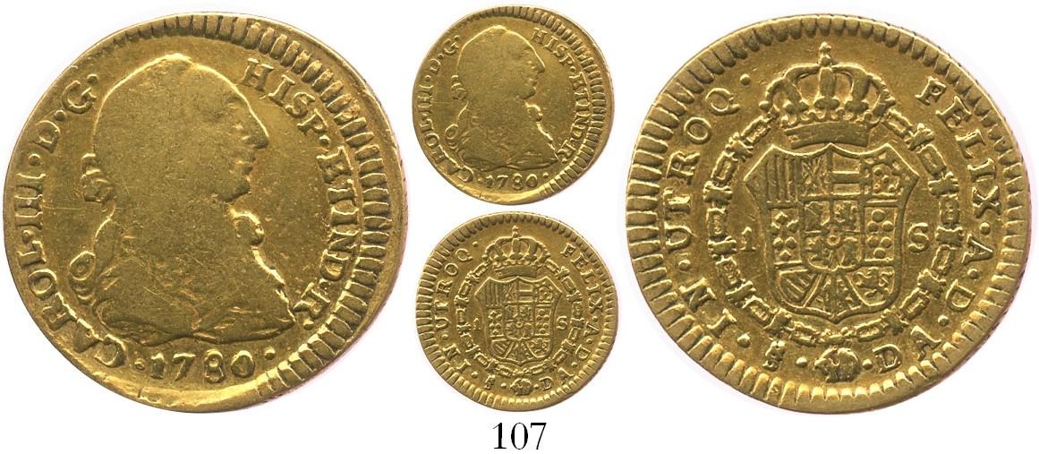 Santiago, Chile, bust 1 escudo, Charles III, 1780DA. KM-26; CT-734. 3.4 grams. Problem-free AVF with significantly off-center obverse (enough to be considered an error?).