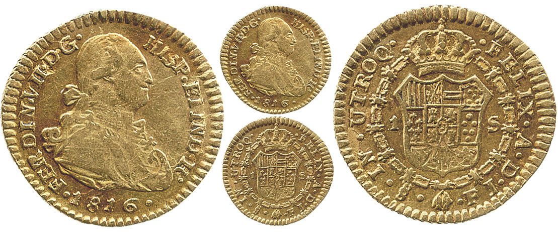 Santiago, Chile, bust 1 escudo, Ferdinand VII (bust of Charles IV), 1816FJ, very rare.