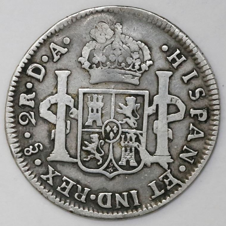 Santiago, Chile, bust 2 reales, Charles III, 1788DA.