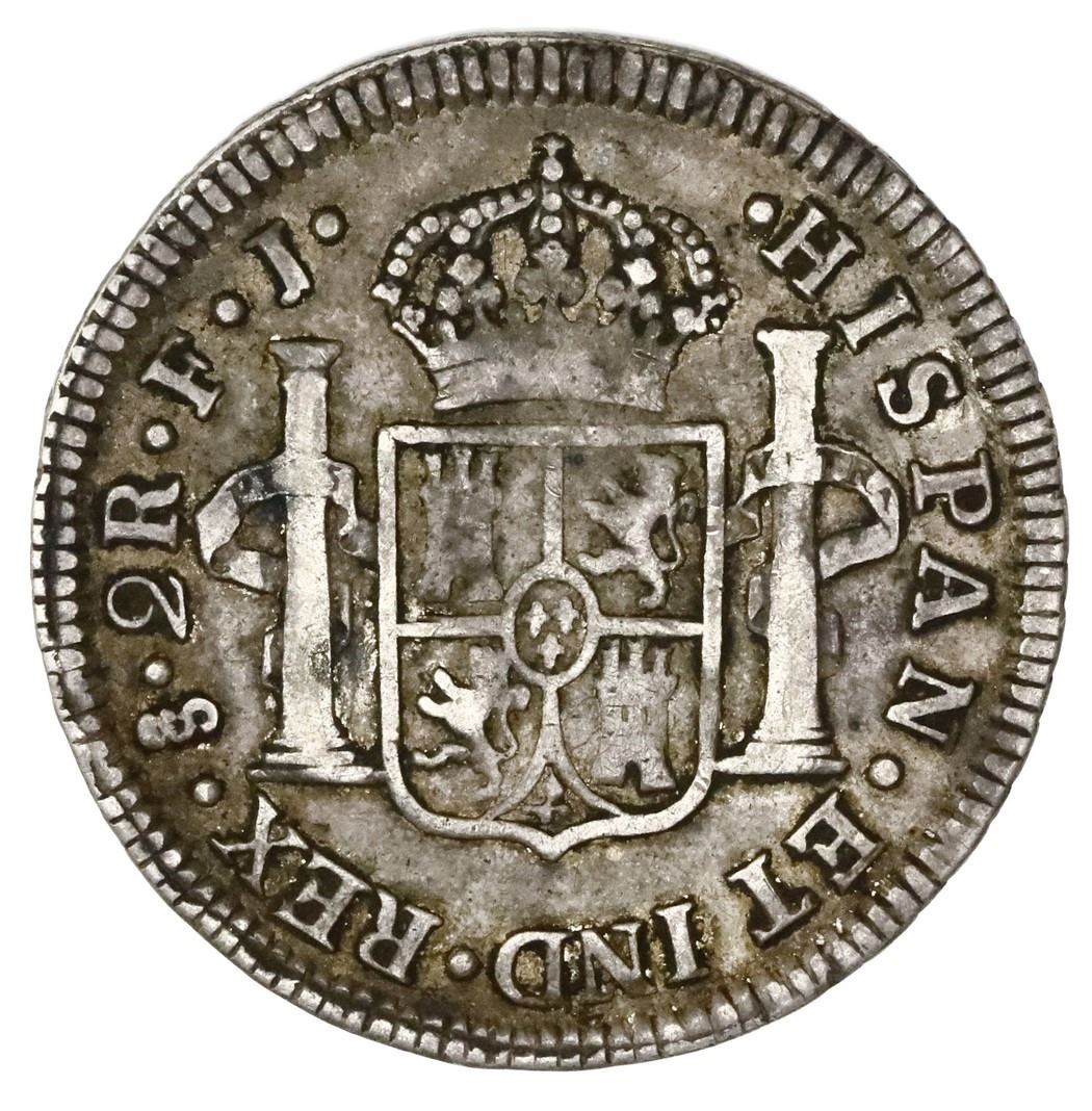 Santiago, Chile, bust 2 reales, Ferdinand VII, 1813FJ. KM-79; Cal-943. 6.67 grams. About VF with past cleaning, light sedimentation around devices.