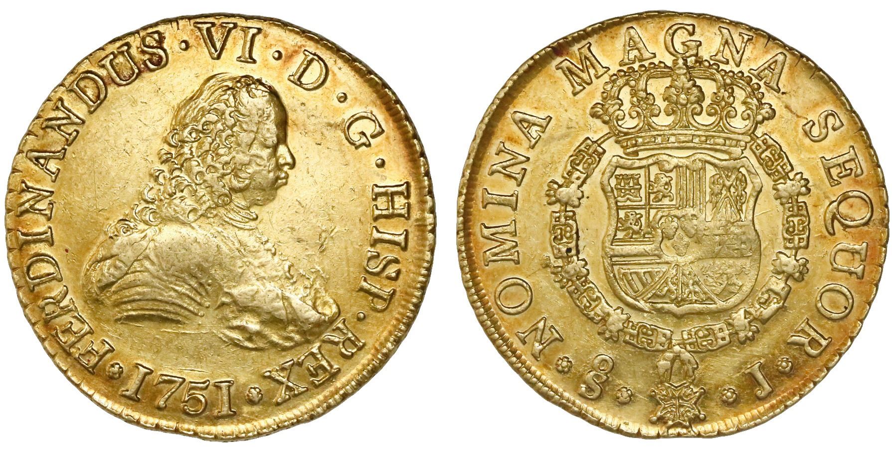 Santiago, Chile, bust 8 escudos, Ferdinand VI, 1751J.