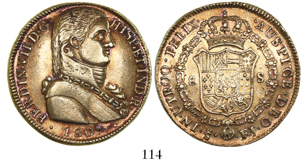 Santiago, Chile, bust 8 escudos, Ferdinand VII ( admiral bust ), 1809FJ.