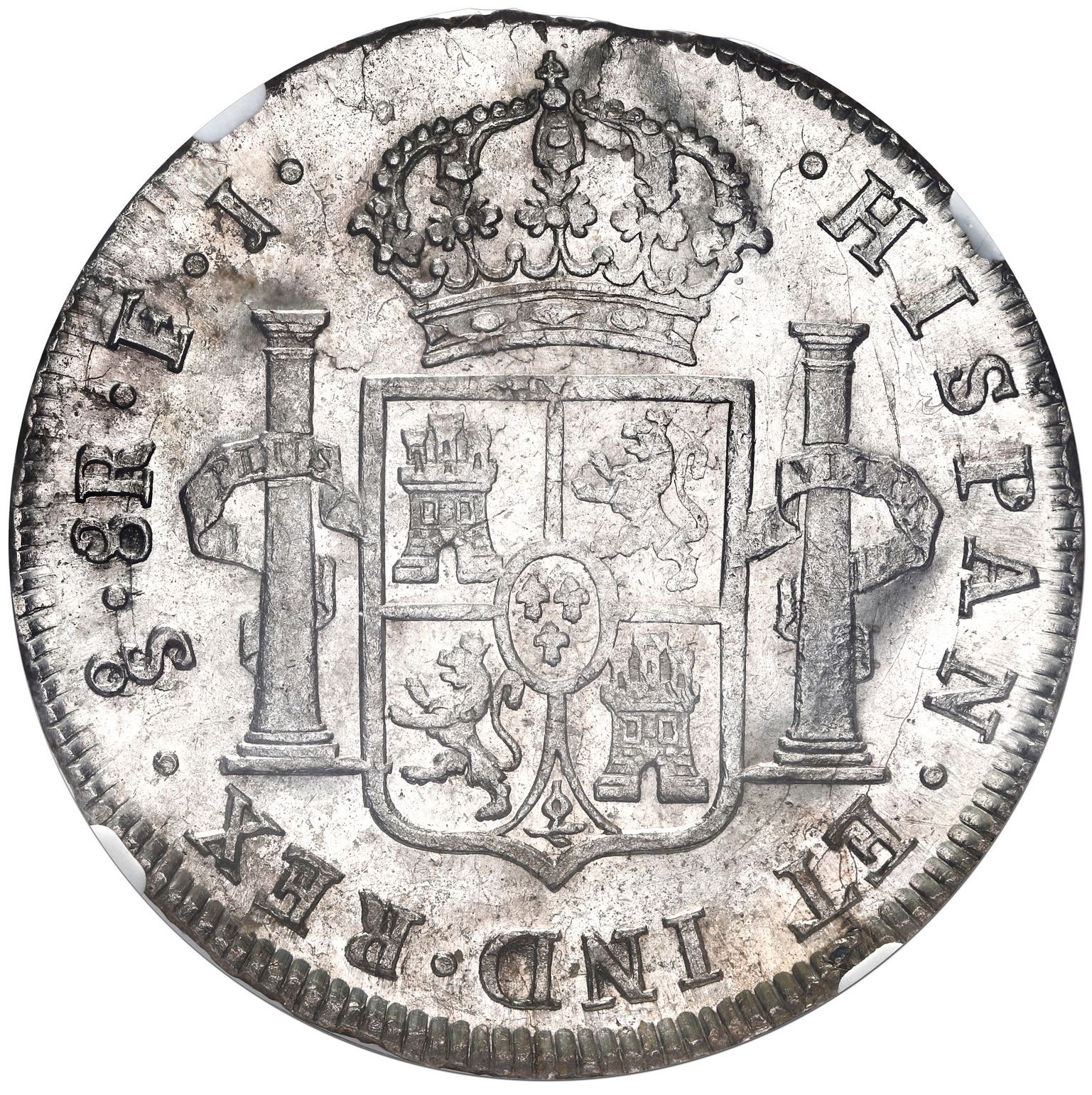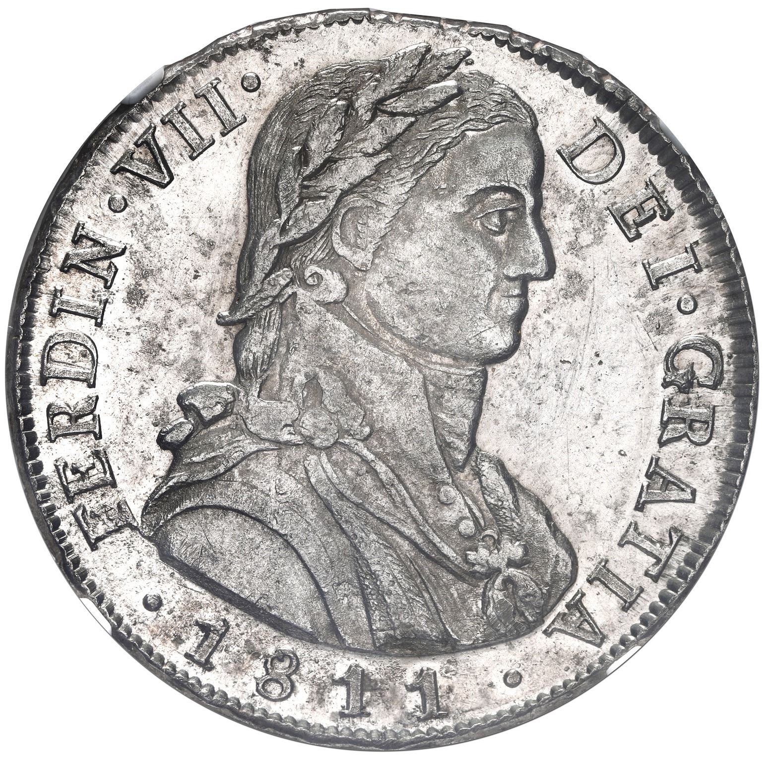 Santiago, Chile, bust 8 reales, Ferdinand VII ("admiral" bust), 1811 FJ, NGC MS 62.