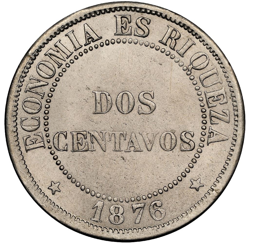 Santiago, Chile, copper-nickel 2 centavos, 1876, NGC MS 63 (Coleccion Val y Mexia label), finest kno