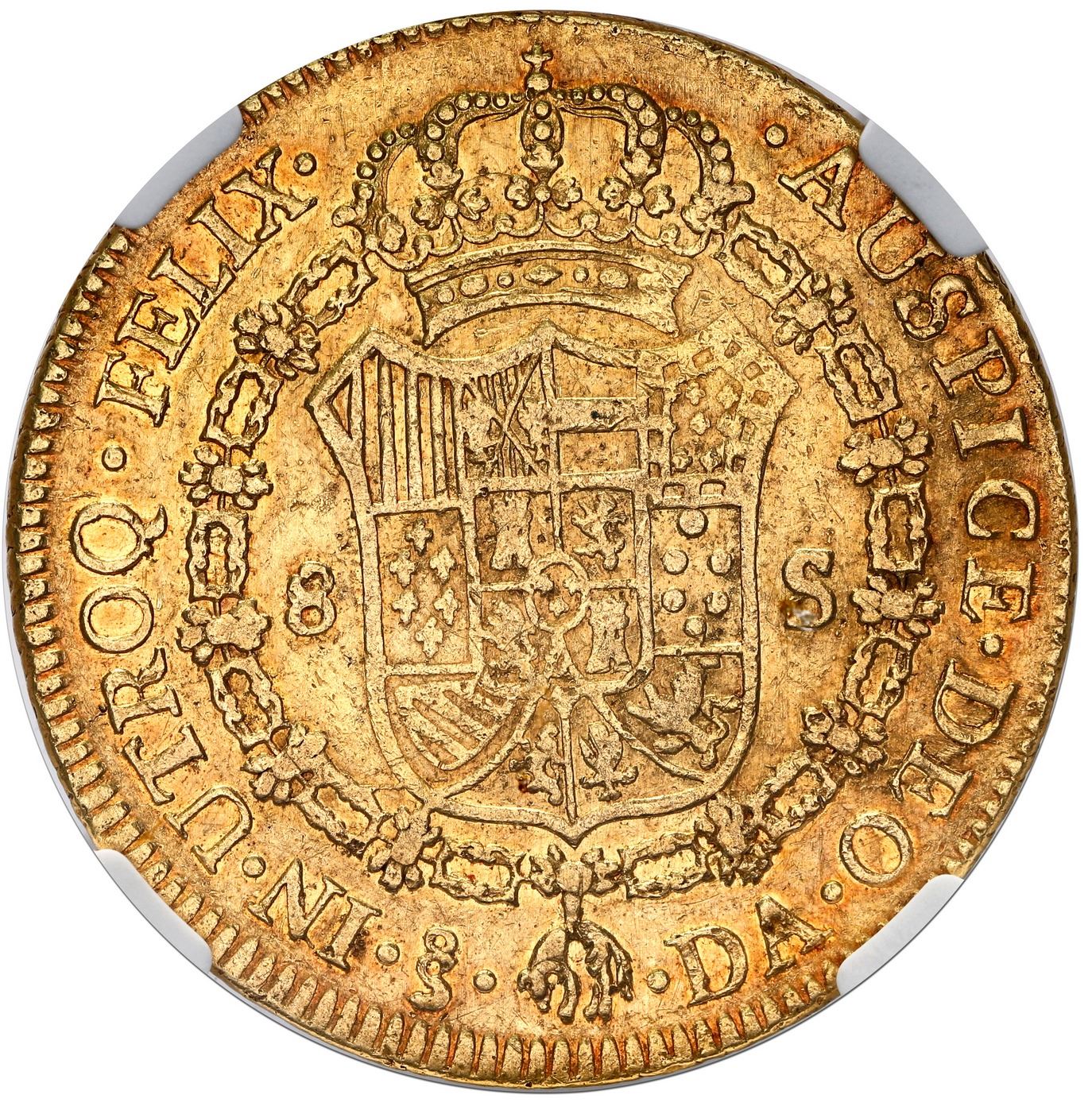 Santiago, Chile, gold bust 8 escudos, Charles III, 1781 DA, NGC AU 50.