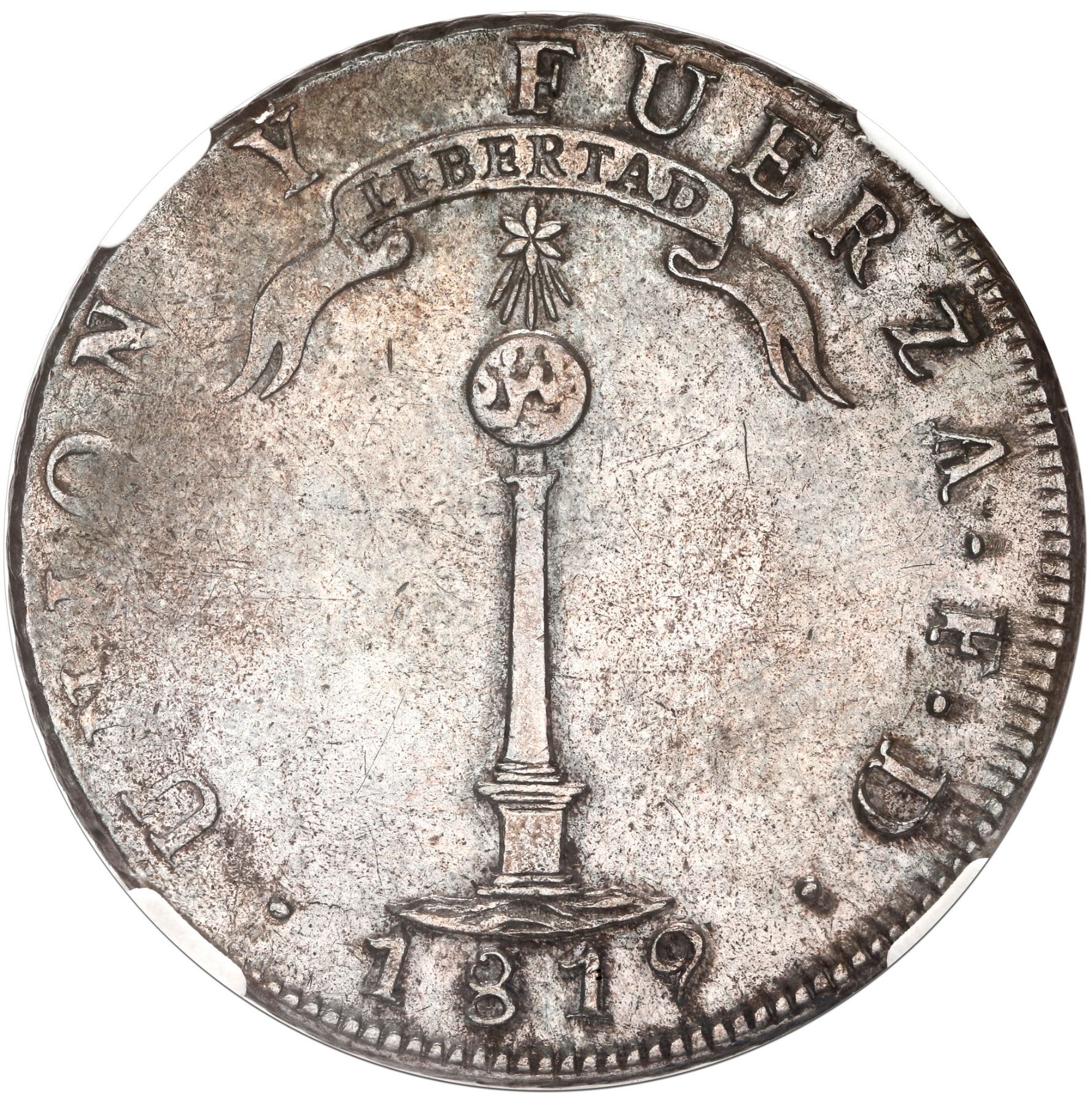 Santiago, Chile, "volcano" peso, 1819 FD, NGC XF details / cleaned.