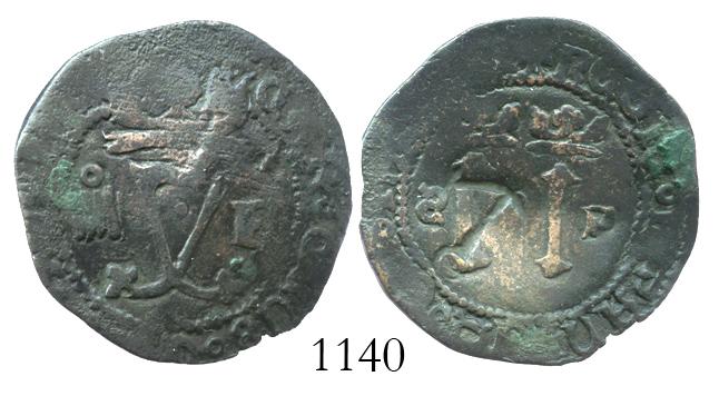 Santo Domingo, Dominican Republic, copper 4 maravedis, Charles-Joanna, assayer F, with anchor countermark (Jamaica, 1611-16). 3.3 grams. Nicely detailed VF with full o-IIII denomination to left and assayer F to right, full pillars with bold S (backwards) and P and bold countermark, much legend (both Gothic and Latin), mostly dark brown. With small Sedwick card-certificate ("First Coins of the Caribbean").