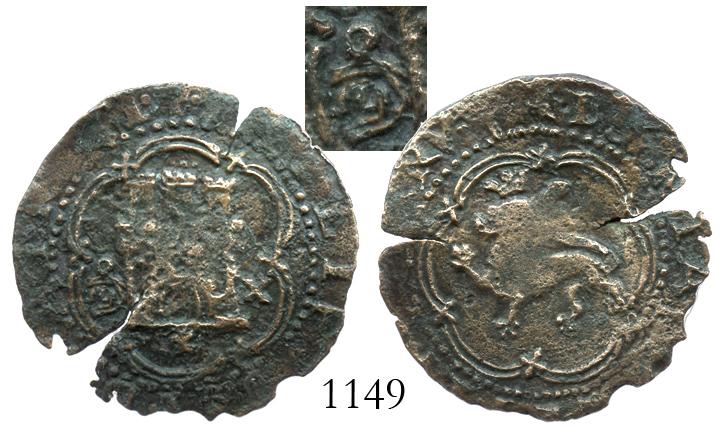 Santo Domingo, Dominican Republic, copper 4 maravedis, Philip II, assayer X, extremely rare. 3.7 grams. From a very small, recently found Caribbean cache of these coins, finally allowing us to study the different die-varieties, of which we can identify at least five so far (all of which show a castle above small pomegranate between oSD-monogram mintmark to left and assayer X to right inside a double-line tressure on the obverse and crowned lion on reverse). This specimen shows a castle with even-height turrets, rectangular windows, tressure dimples at 1-3-5-7-9-11 o'clock, VF details but thin from light corrosion and with 2 edge-splits, full castle and nice full lion, much legend, mostly red but with some dark brown color.
