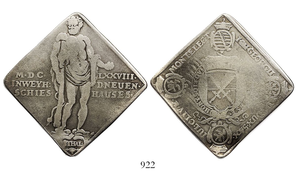 Saxony (German States), klippe thaler, Johann George II, 1678. KM-562; Dav-7636. 21.39 grams. Lightly toned AVF, no problems, struck to commemorate a shooting match at Dresden.