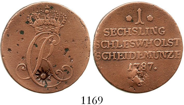 Schleswig-Holstein, German States (under Danish rule), copper 1 sechsling, Christian VII, 1787, with