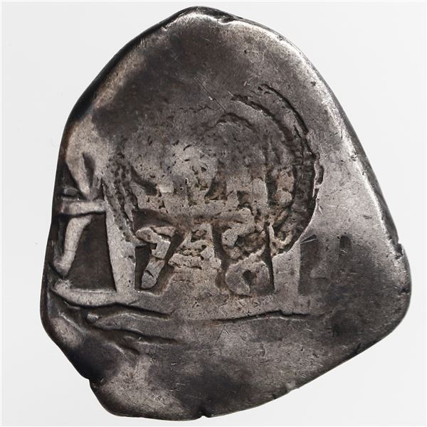 1704 - El Salvador, 1 real, arms countermark (Type V, 1869) on pillars side of a Potosi, Bolivia, cob 1 reaSedwick & Associates, LLC