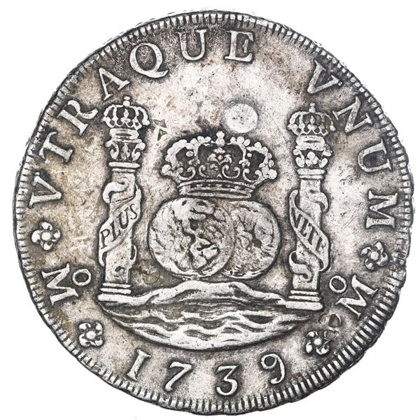 Mexico City, Mexico, pillar 8 reales, Philip V, 1739 MF, with chopmarks as from circulation in Asia. KM-103; Cal-1453; Yonaka-M8.39. 26.71 grams. VF+