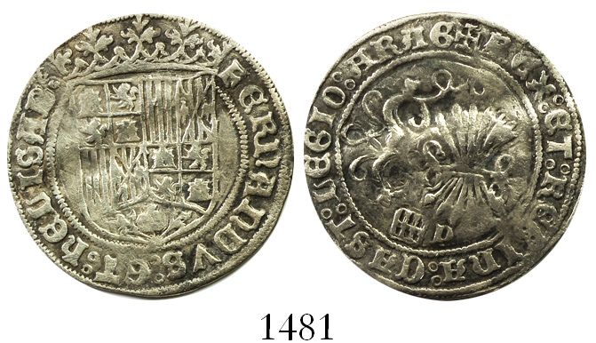 Segovia, Spain, 1 real, Ferdinand-Isabel, mintmark aqueduct and assayer P at bottom on reverse.