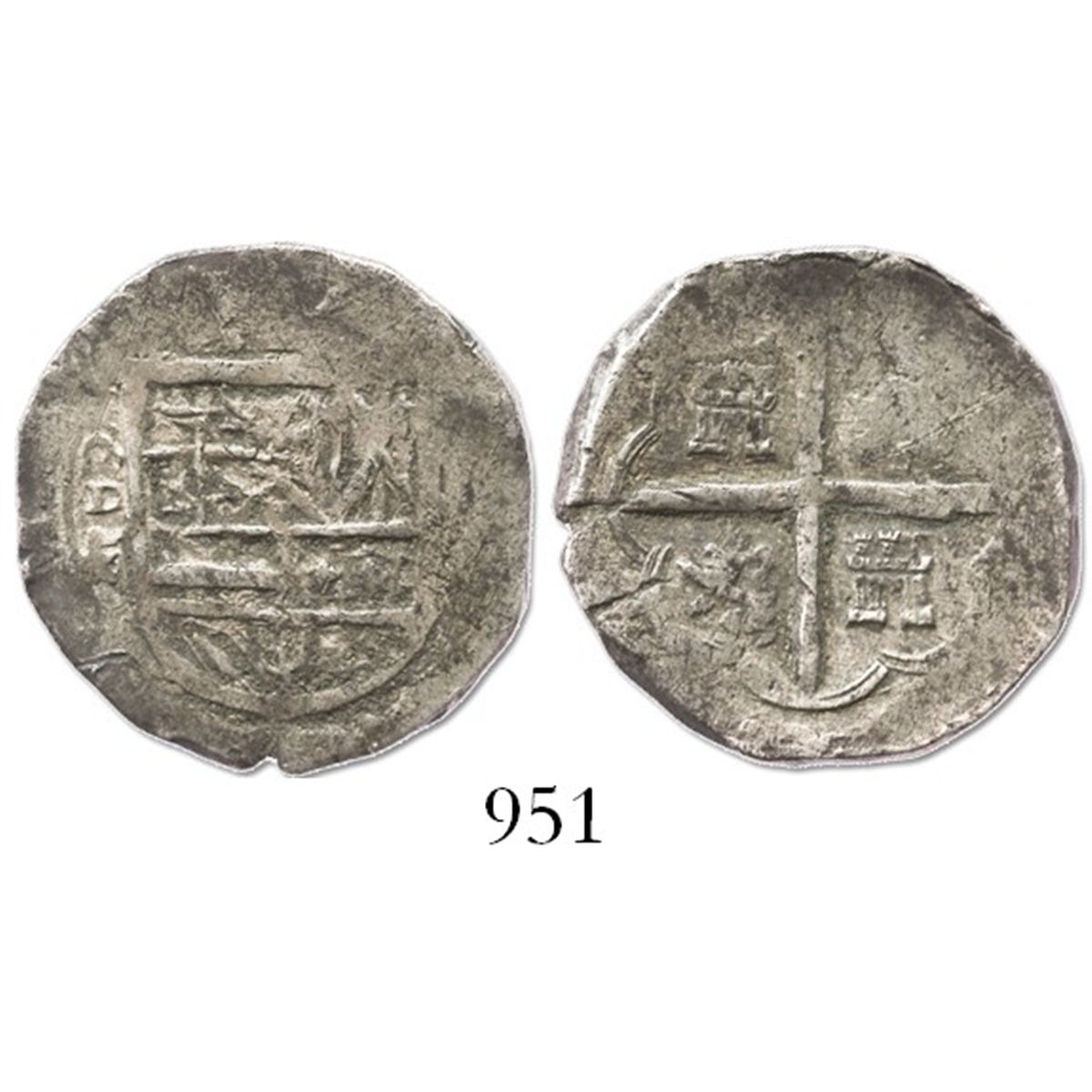 Segovia, Spain, cob 2 reales, Philip II, assayer oD, rare.