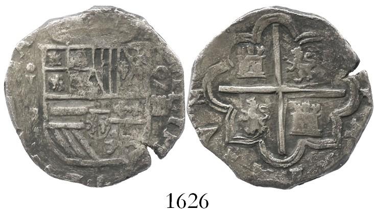 Segovia, Spain, cob 4 reales, (15)92 date to right, assayer I to left of shield, rare.