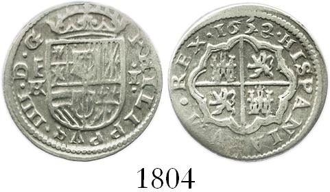 Segovia, Spain, milled 1 real "half pistareen," Philip IV, 1652/28BR (unlisted overdate).