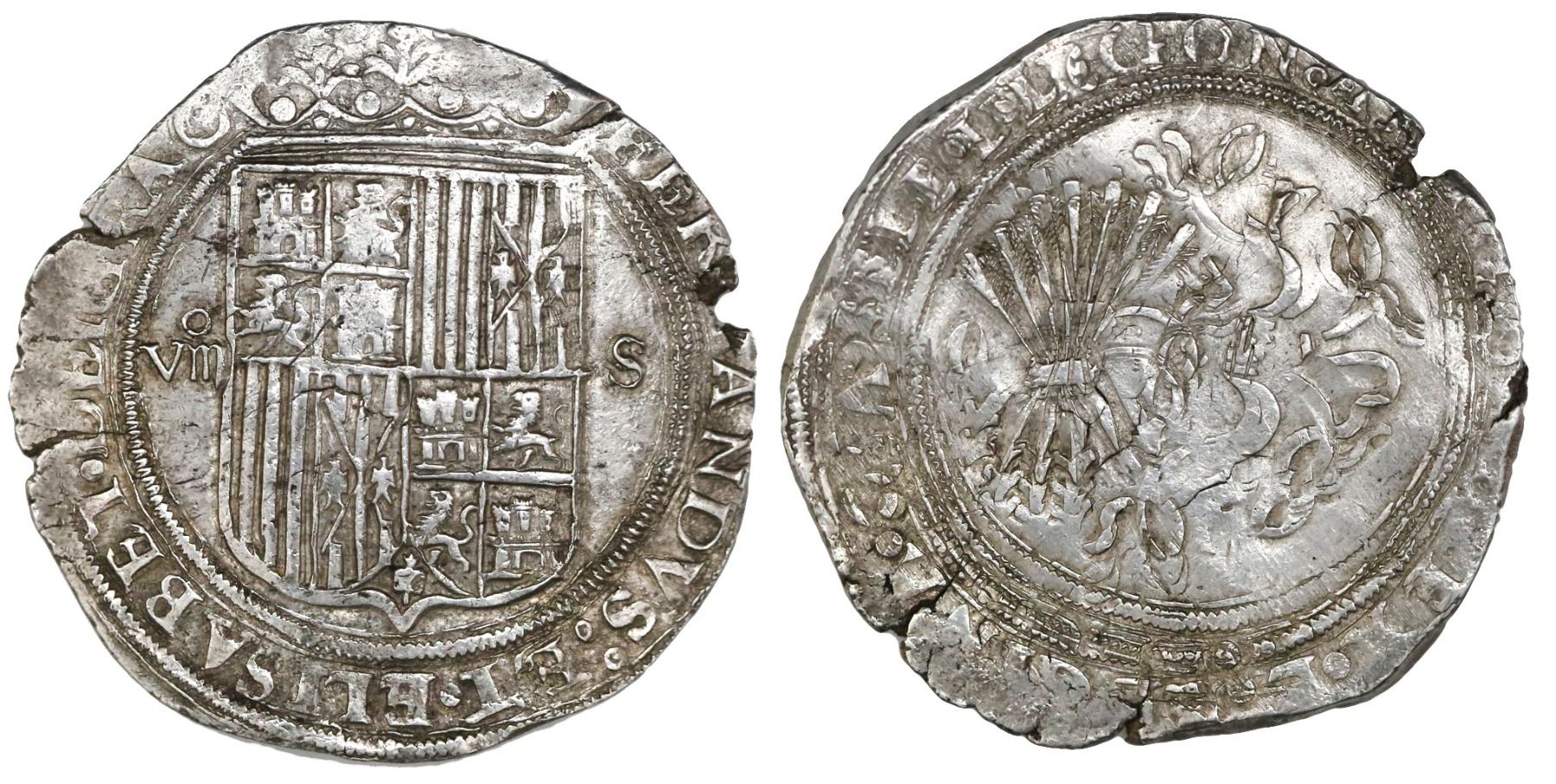 Seville, Spain, 8 reales, Ferdinand-Isabel, mintmark S to right, denomination oVIII to left (rare),
