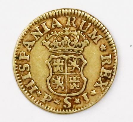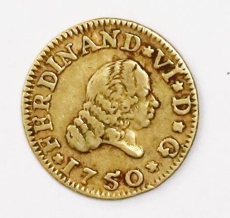 Seville, Spain, bust 1/2 escudo, Ferdinand VI, 1750PJ. CT-263; KM-374. 1.75 grams. Problem-free AXF with light sediment around details.