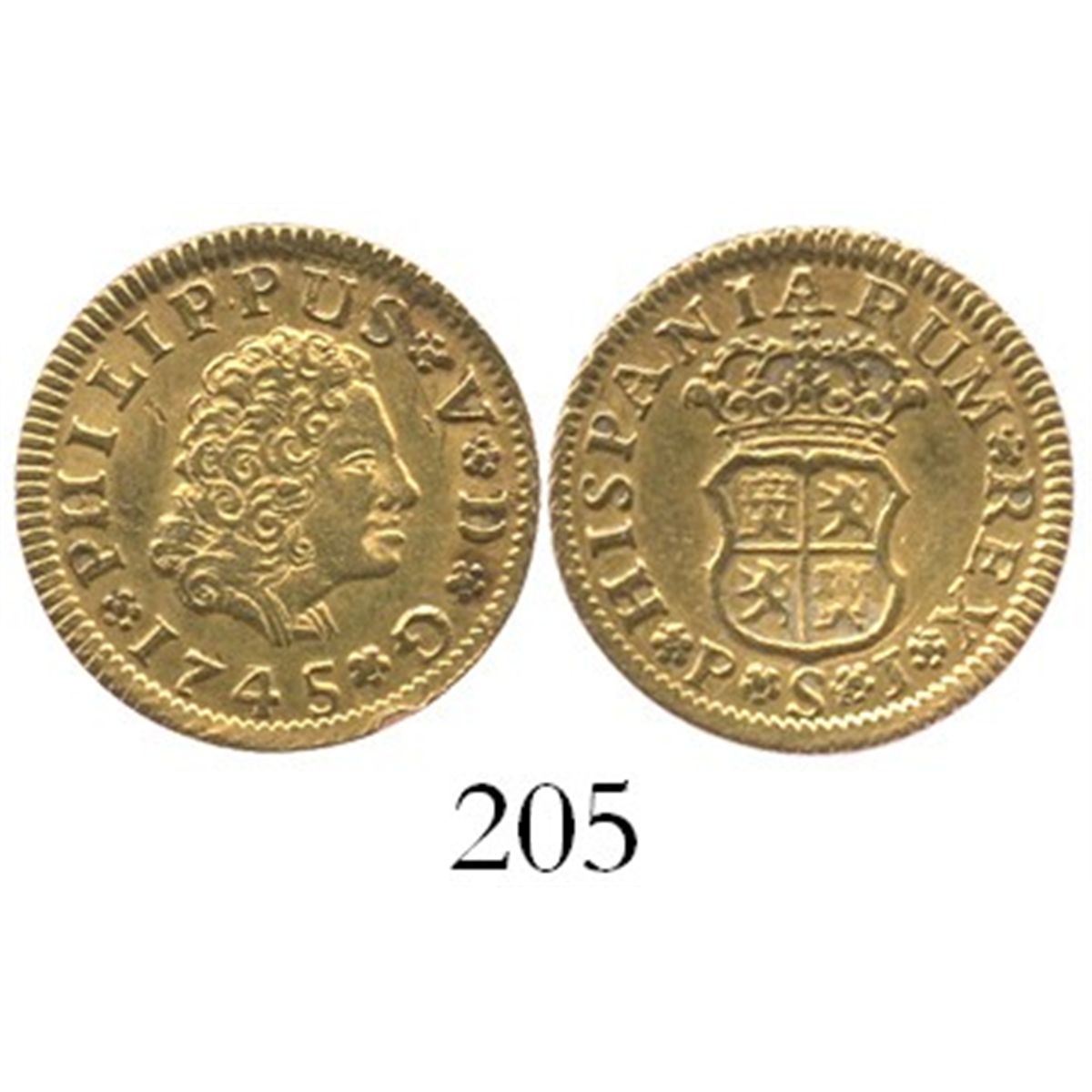 Seville, Spain, bust 1/2 escudo, Philip V, 1745PJ.