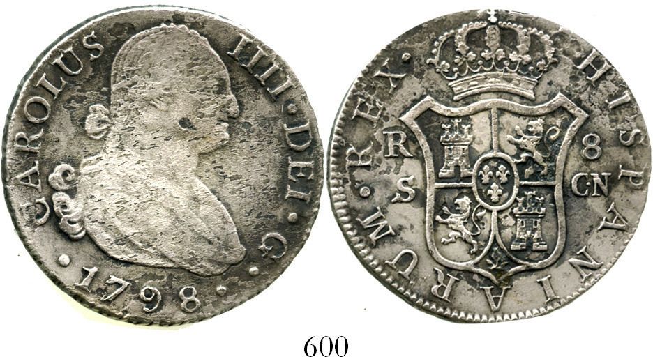 Seville, Spain, bust 8 reales, Charles IV, 1798CN. KM-432.2; CT-774. 25.2 grams. Bold details enhanc