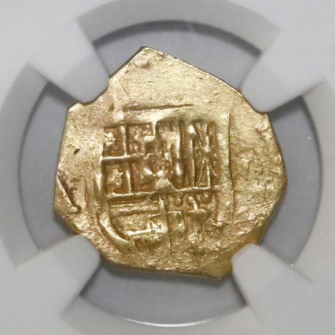 Seville, Spain, cob 1 escudo, Philip III, assayer B. CT-Type 29; KM-42.2. 3.00 grams. Full mintmark-assayer, nearly full shield and cross, lightly clipped around edge. Pedigreed to our Auction #17 (lot #83).
