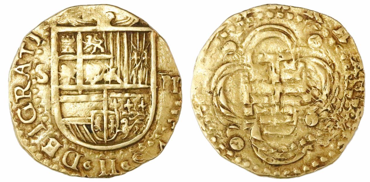 Seville, Spain, cob 2 escudos, Philip II, assayer not visible.