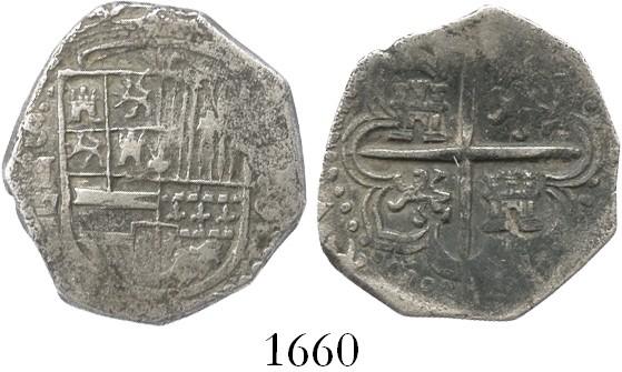 Seville, Spain, cob 2 reales, (15)89 date to right, assayer Gothic D to left of shield.