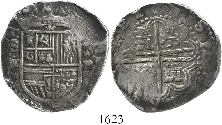 Seville, Spain, cob 4 reales, 1590/89 date to right, assayer Gothic D to left of shield, unlisted ov