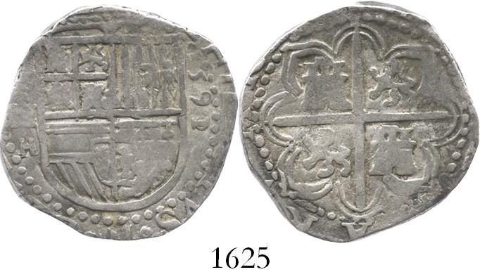 Seville, Spain, cob 4 reales, 1591/0 date to right, assayer H to left of shield.