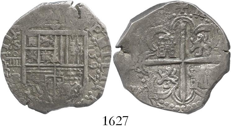 Seville, Spain, cob 4 reales, 1592 date to right, assayer B to left of shield.