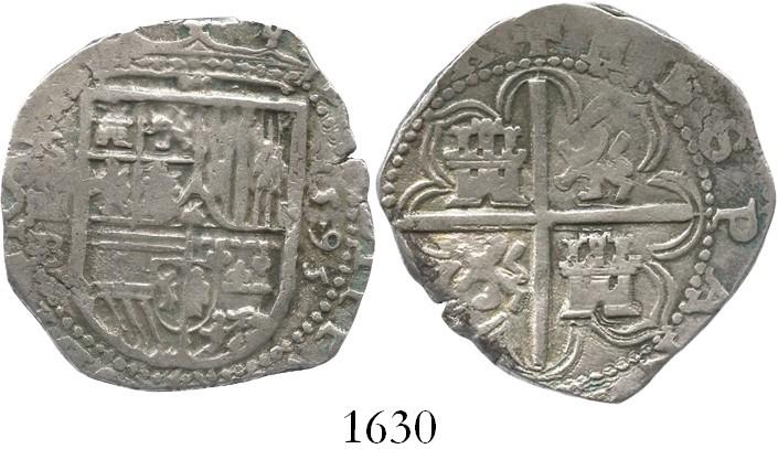 Seville, Spain, cob 4 reales, 1595 date to right, assayer B to left.