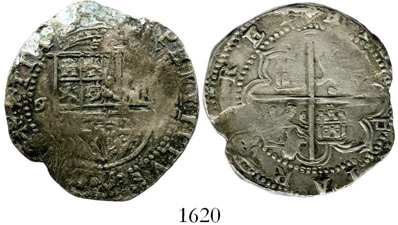Seville, Spain, cob 4 reales, Philip II, assayer Gothic D at 4 o'clock outside tressure.