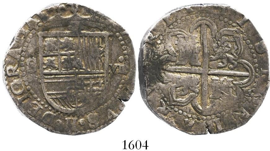 Seville, Spain, cob 8 reales, Philip II, assayer Gothic D at 4 o'clock outside tressure.