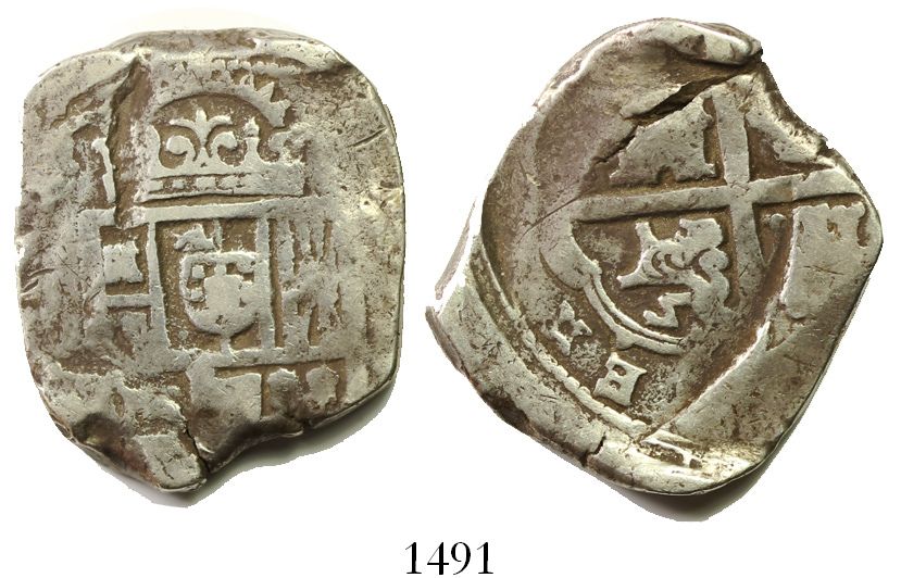 Seville, Spain, cob 8 reales, Philip IV, assayer not visible.