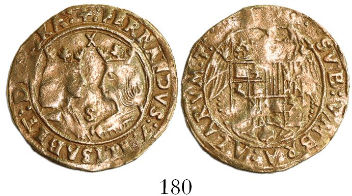 Seville, Spain, double excelente, Ferdinand-Isabel, X at top and S between busts.