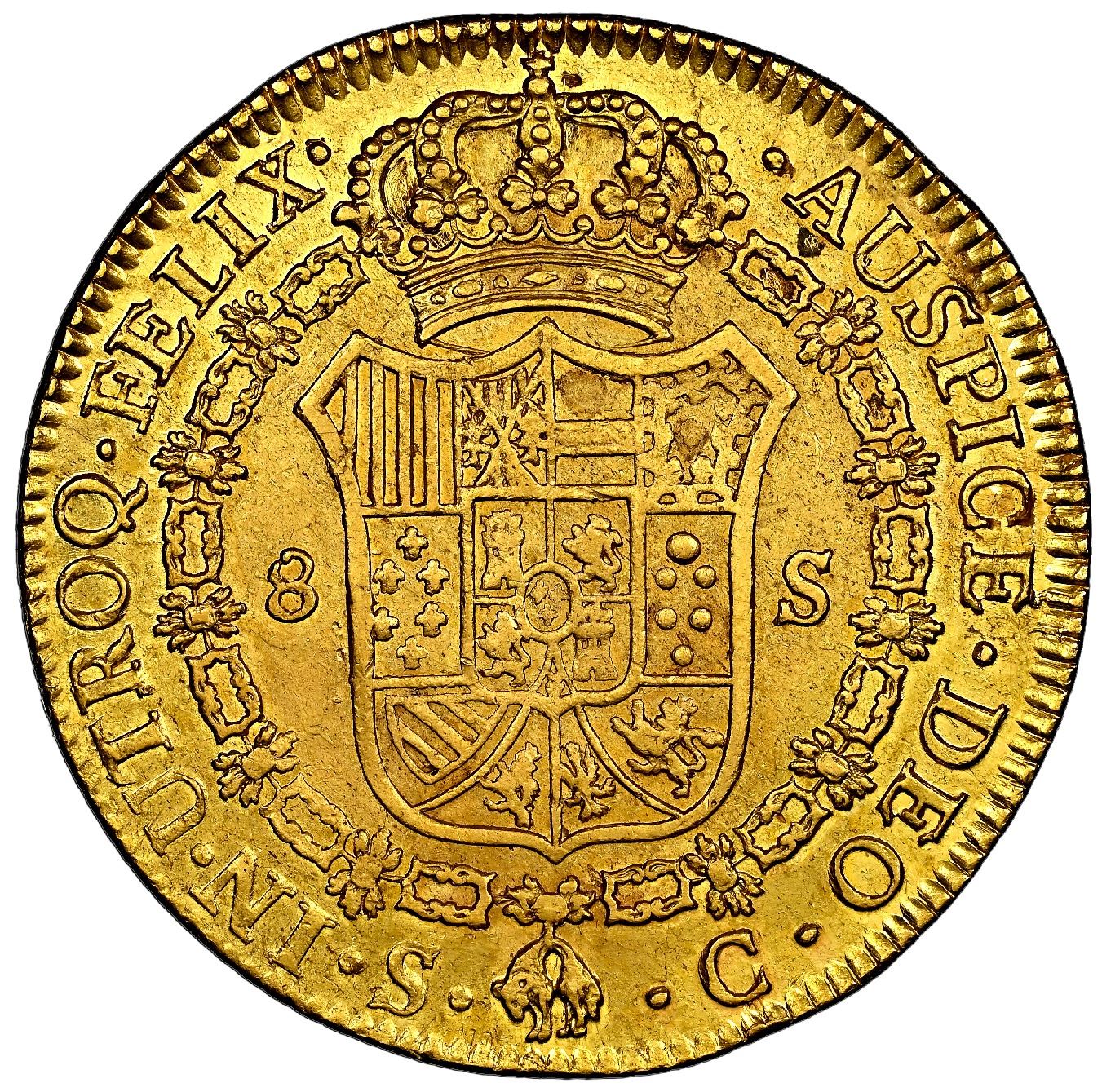 Seville, Spain, gold bust 8 escudos, Charles III, 1786 C, NGC AU details / rev cleaned.