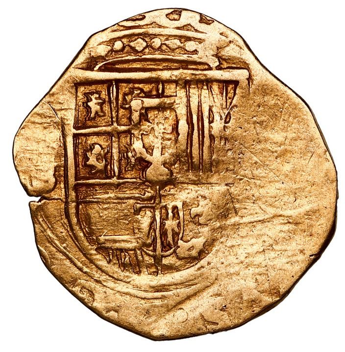 Seville, Spain, gold cob 1 escudo, Philip III, assayer not visible (B), OMNIVM variety.