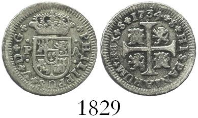 Seville, Spain, milled 1/2 real "quarter pistareen," Philip V, 1734PA. CT-1931; KM-350.2. 1.4 grams. Nice VF with attractive toning, no problems.