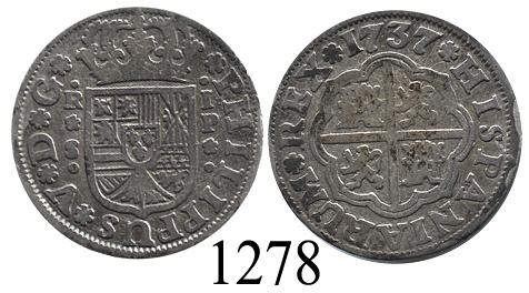 Seville, Spain, milled 1 real "half pistareen," Philip V, 1737P. CT-1267. 2.7 grams. Nicely toned Fine, no problems.